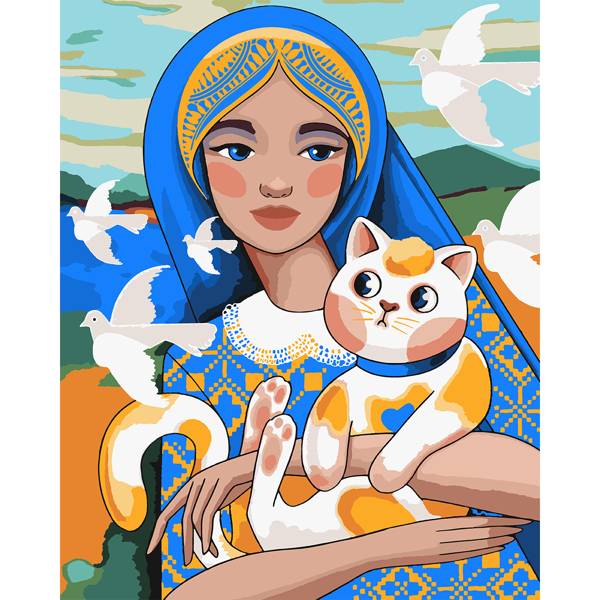 Картина за номерами SANTI "Українка з котиком" 40*50 см